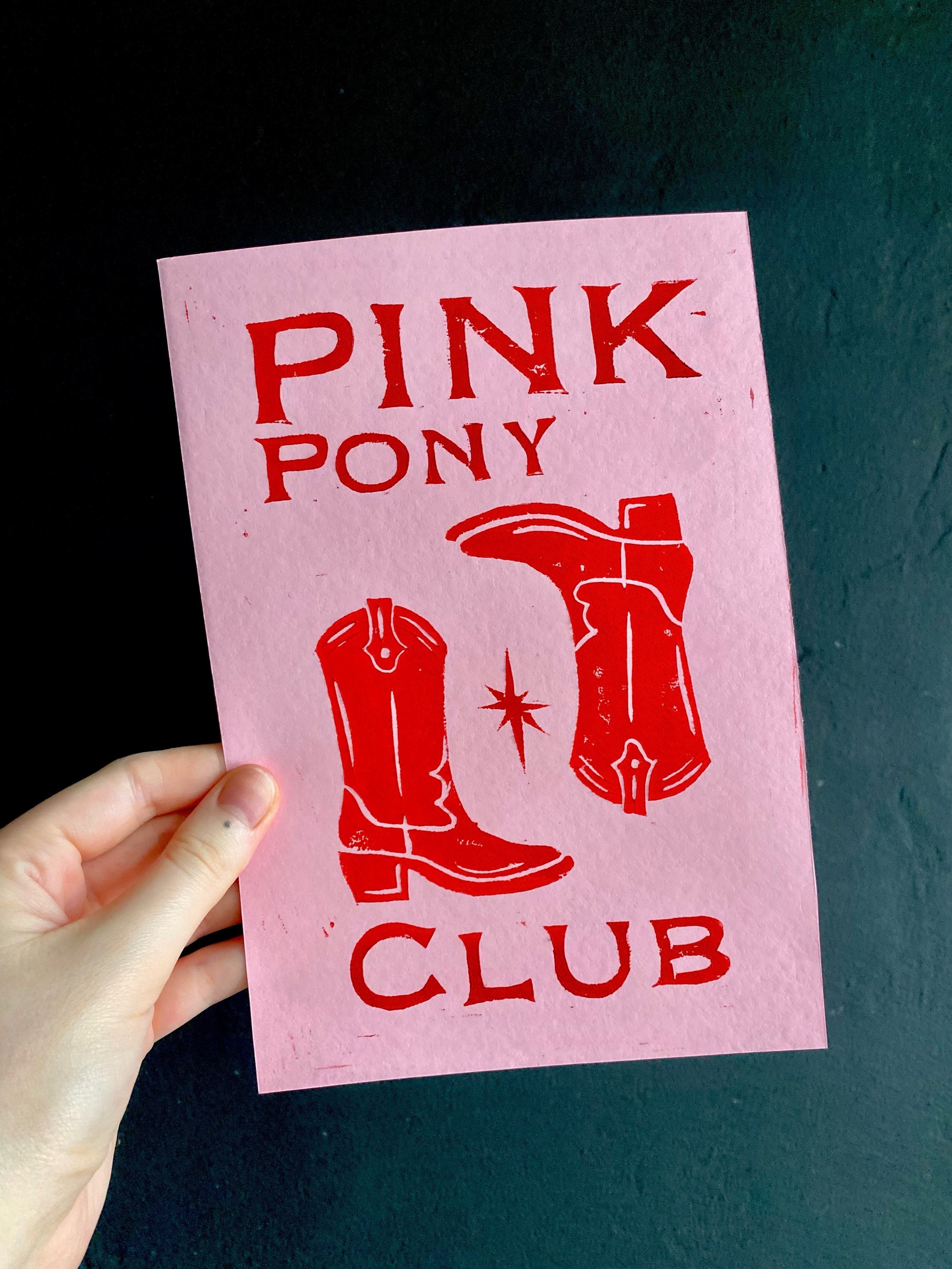 This stylish and colourful print was designed and hand carved out of lino by myself, it would make a great addition to any room or pin board with it's bright colours and simplicity.