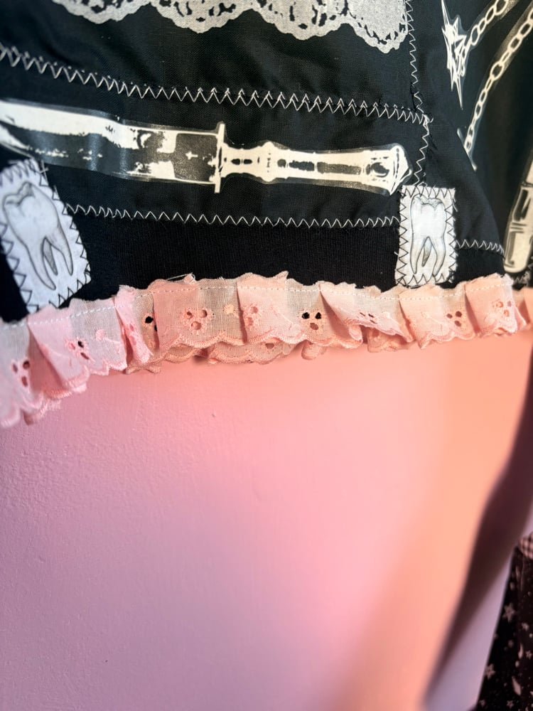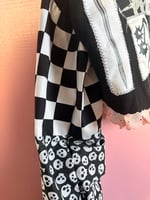 As each one of my items is handmade, there may be slight variation in placements of prints or patches. It also goes without saying, that as these items are handmade there may be things like loose threads or certain items of clothing that are hand sewn instead of put through a machine. Please understand that this is slow fashion, meaning it is handmade and there will be differences in some of the items.